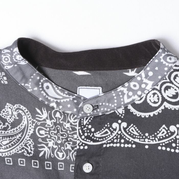 オリジナルのバンダナ柄を3種用いて作られた柄シャツ。