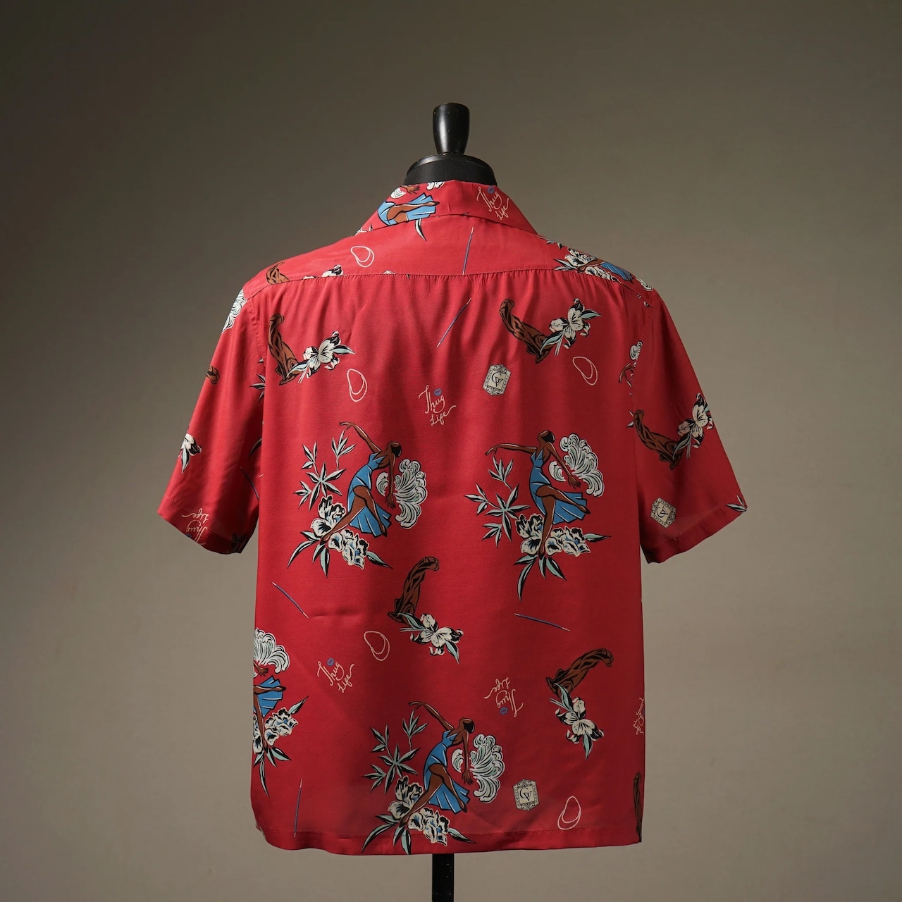 伝説的なセックスシンボルであったエキゾチックなピンナップガールのイメージを基に描き起こしたオリジナルファブリックを製作、ゆったりめのボックスシルエットのシャツ。