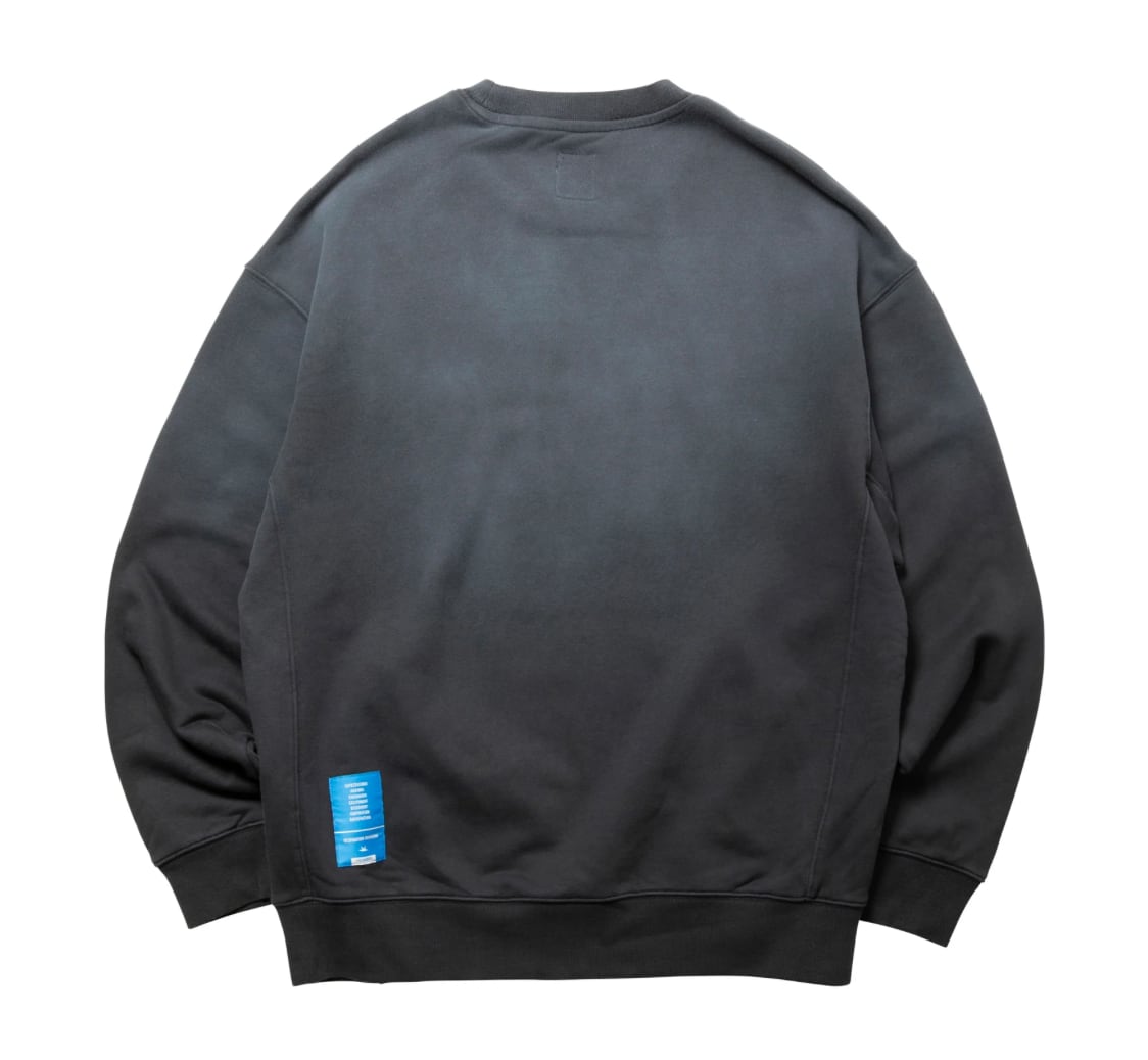 ヘビーウェイトな度詰めの裏毛の定番クルーネックスウェット。今期は上部が退色したようなリアルなフェード加工が特徴です。後裾にデザインラベルが付きます。