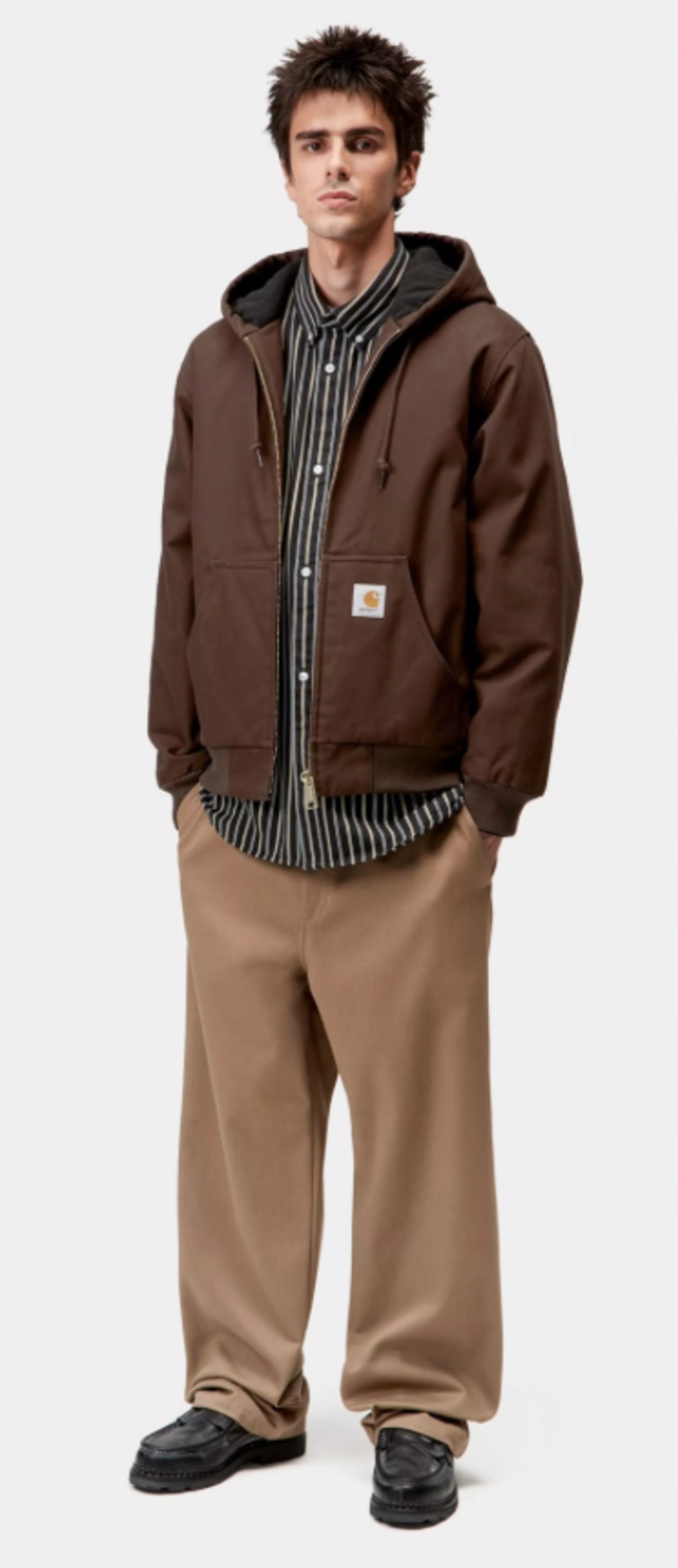 アクティブジャケットは、クラシックなジャケットをベースにしたシルエットを再現しており、耐久性に優れた当社の定番素材ディアボーンキャンバスを使用し、生地には撥水加工を施しています。3Mシンサレート断熱ライニングを備えており、ダウンに代わる軽量で保温性に優れた素材です。体温を閉じ込めつつ湿気を逃がすため、暖かさを保ちながら快適さを保ちます。カーハートWIPのもつワークスタイルに忠実な定番アイテムです。