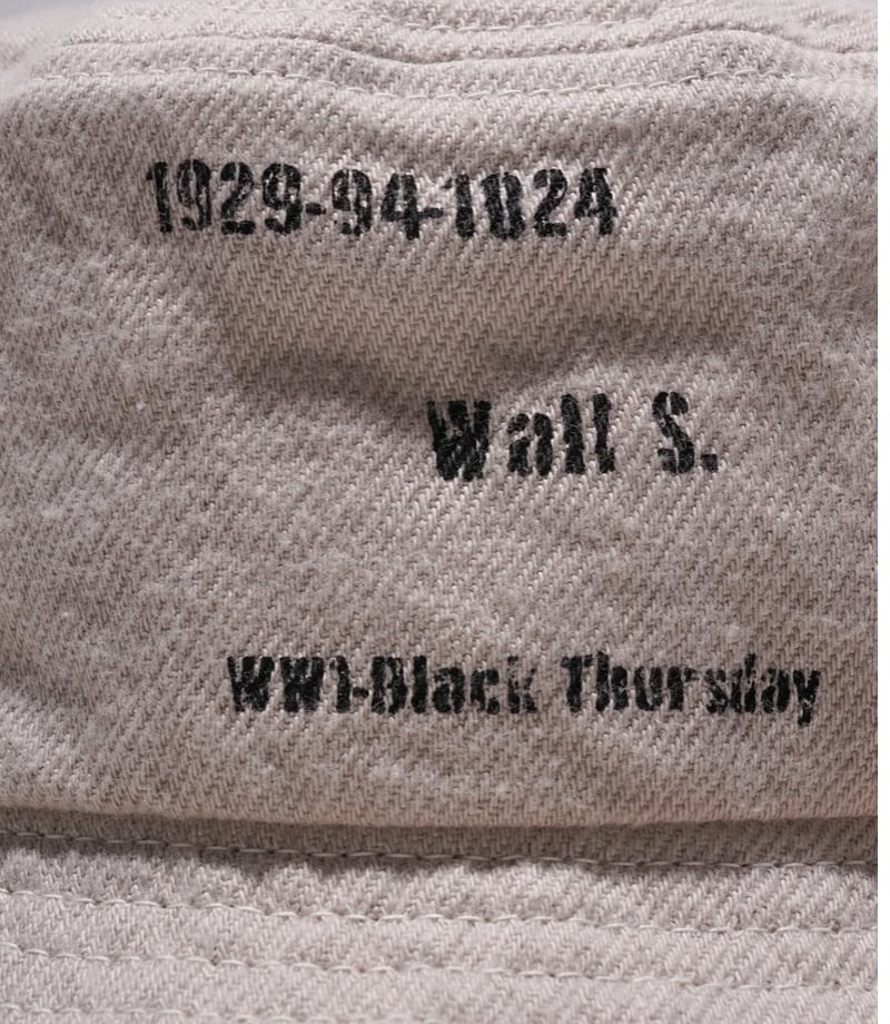 The back features a design printed with the text “1929-94-1024 wall's ww1 Black Thursday,” inspired by the “NEW YORK” concept from the Fall/Winter 2025 collection.