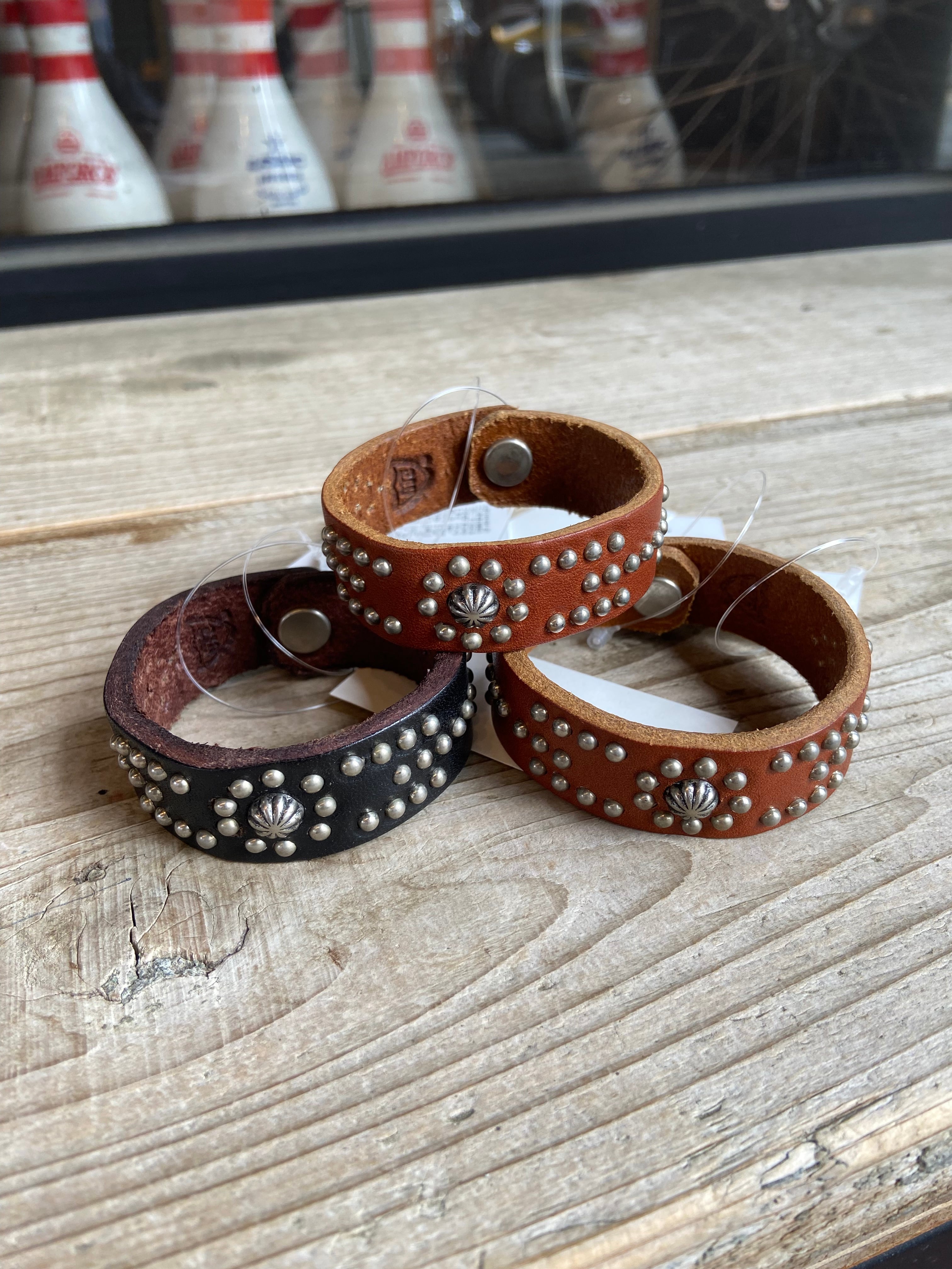 人気のアンブレラスタッズを組み合わせたレザーブレスレットになります。