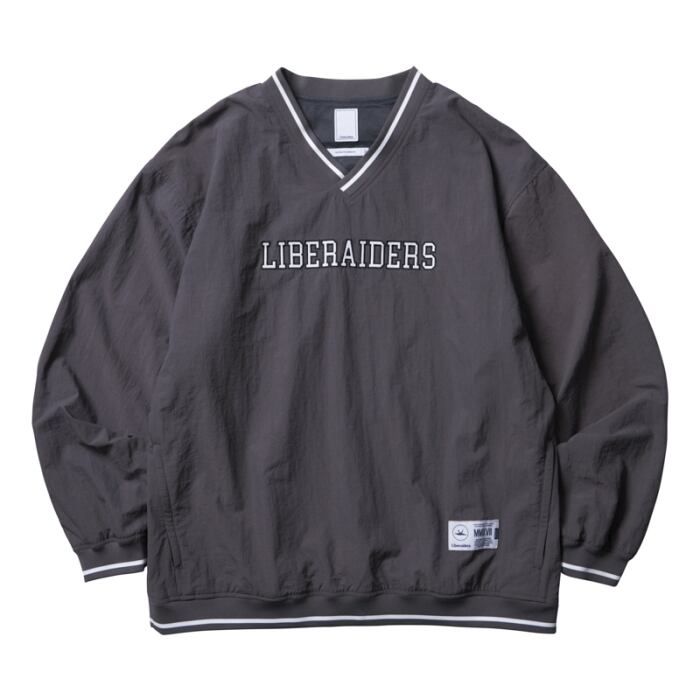 フロントにLiberaidersのカレッジロゴ刺繍が入ったVネックプルオーバー。